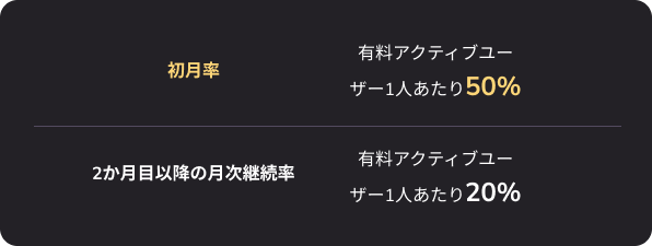 初月は最大60%、以降の月もユーザー契約期間中は30%の収益分配を、純額サブスクリプション料金からお支払いします。