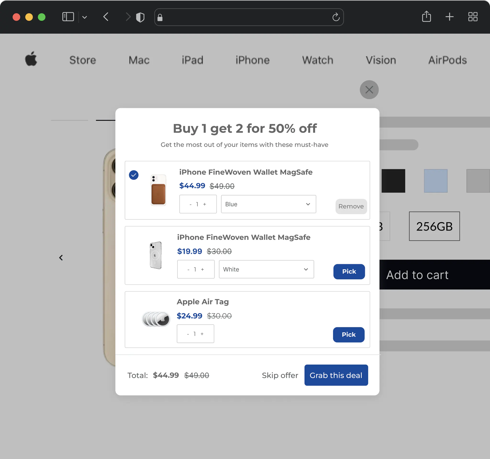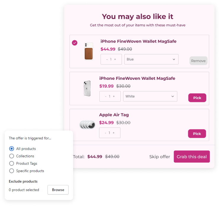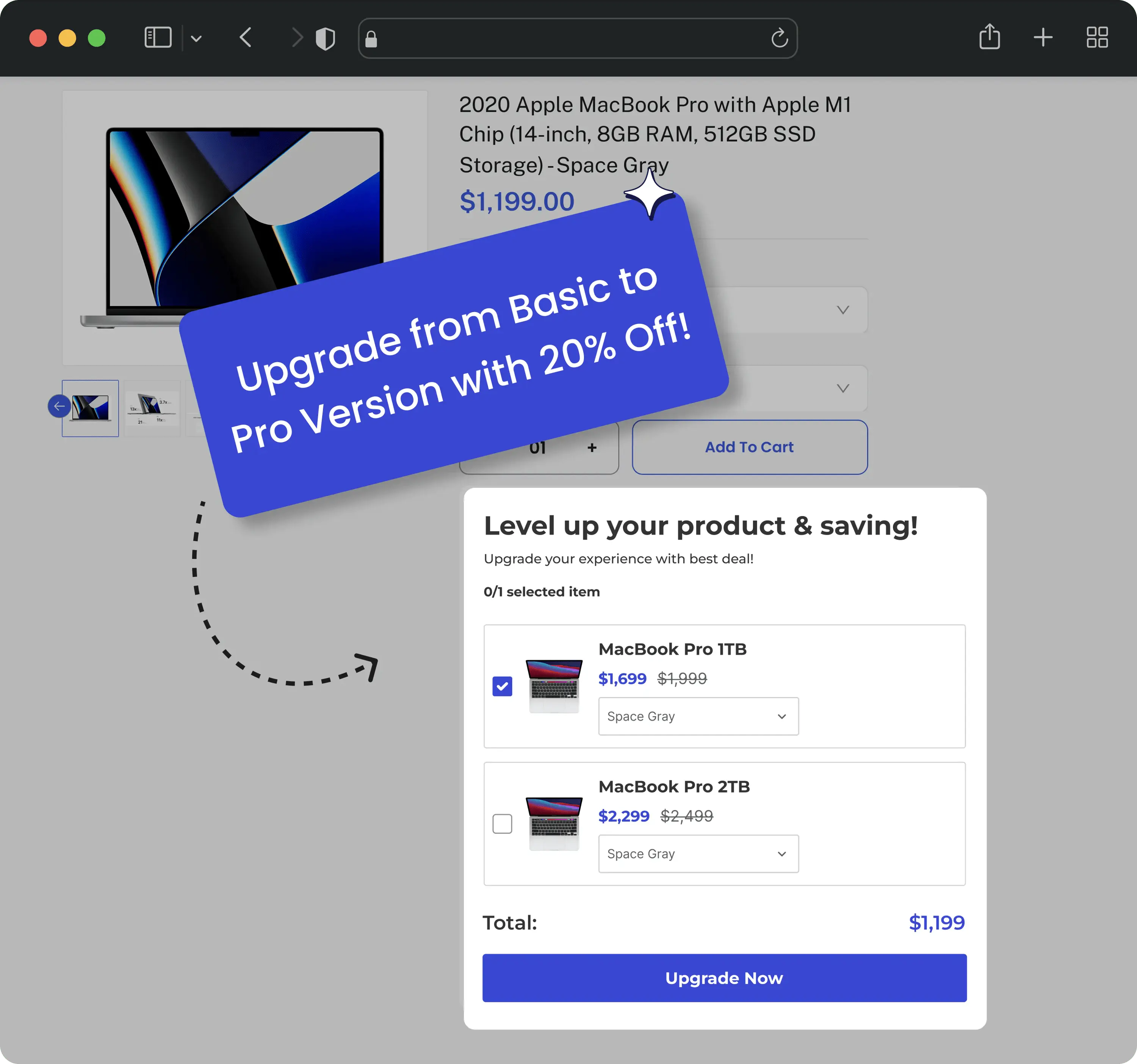 Create upsurge offers to upgrade products in the cart to higher-end versions and increase the total cart value.