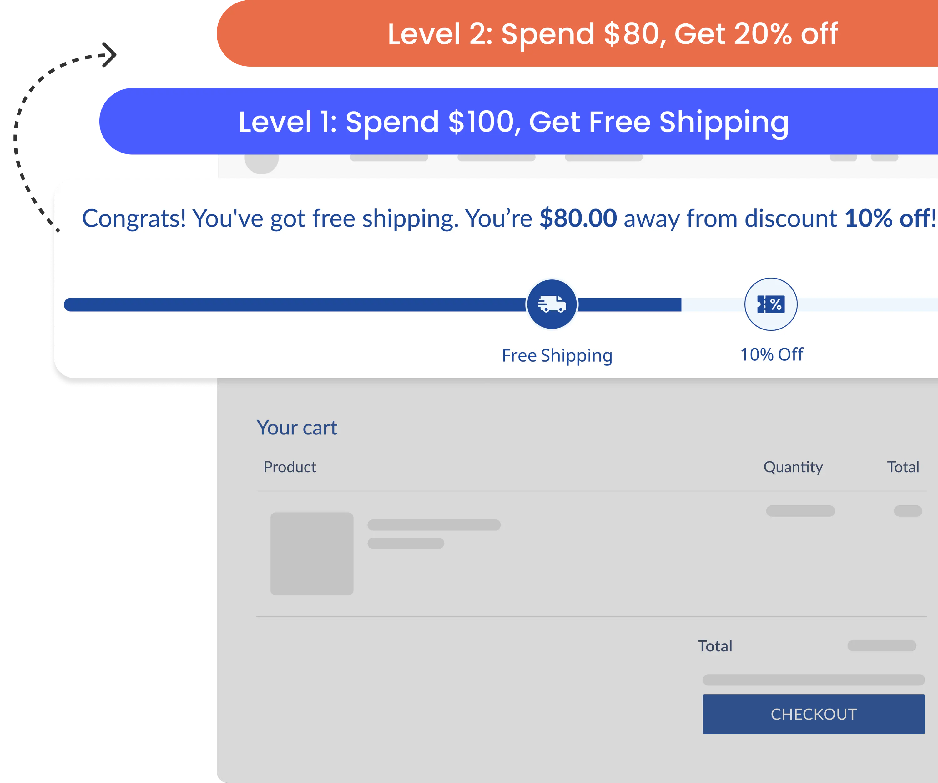 - Level 1: Spend $100 more to unlock Free shipping discount