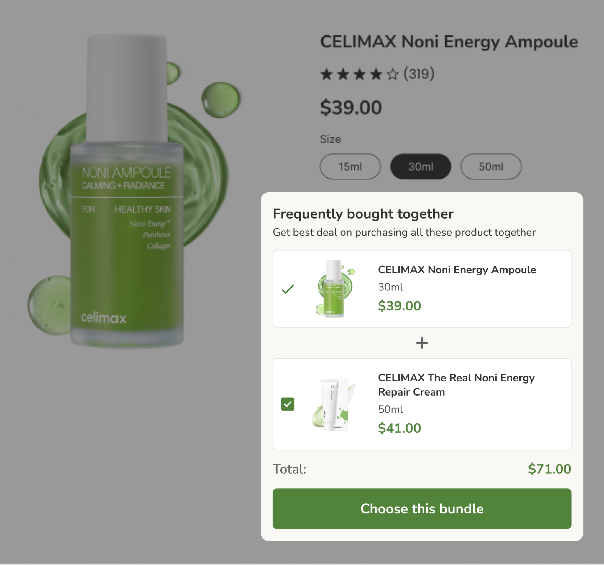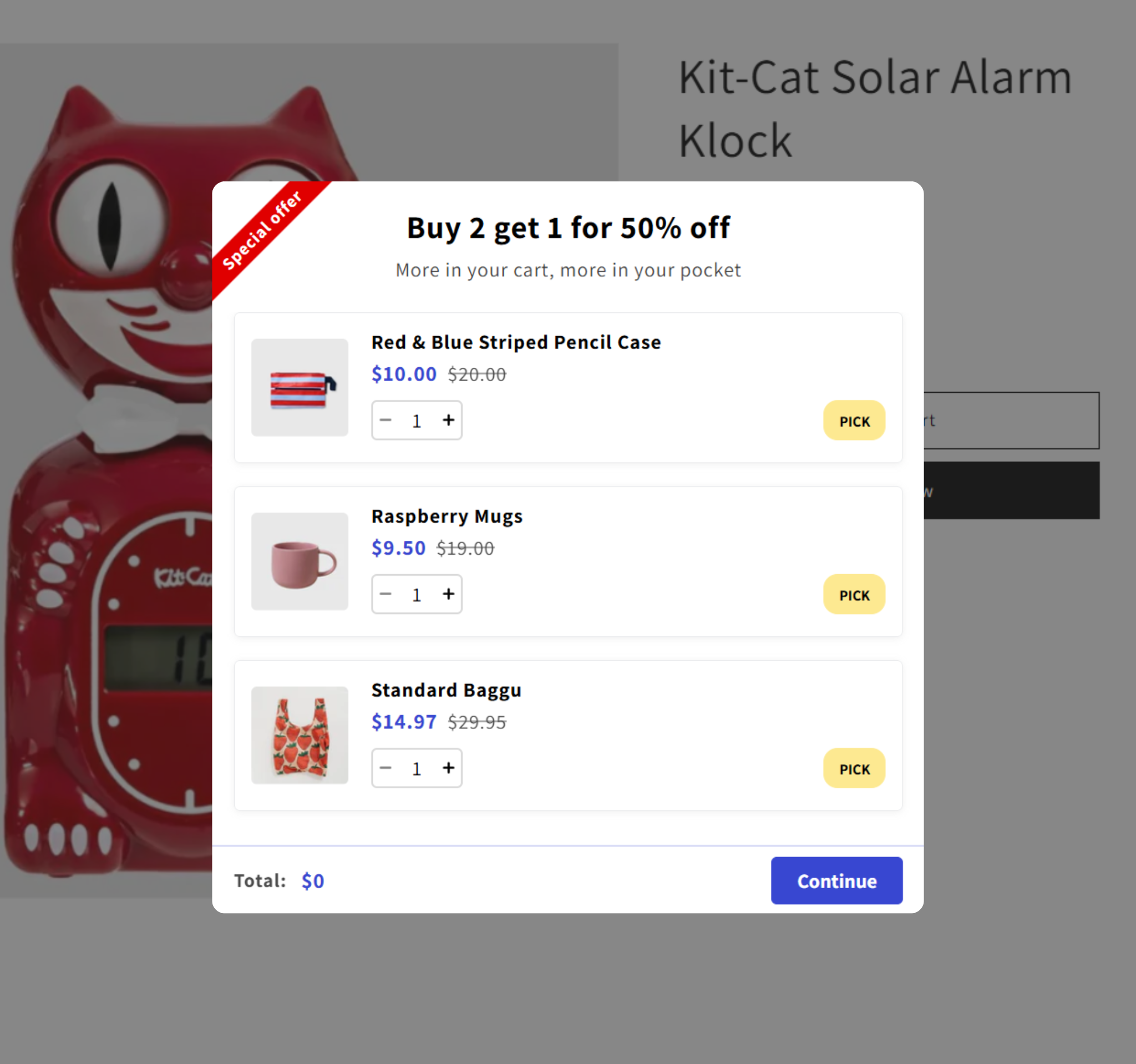 Encourage customers to add more to their cart with attractive upsell offers. Activate this offer for either a specific product or the whole collection.