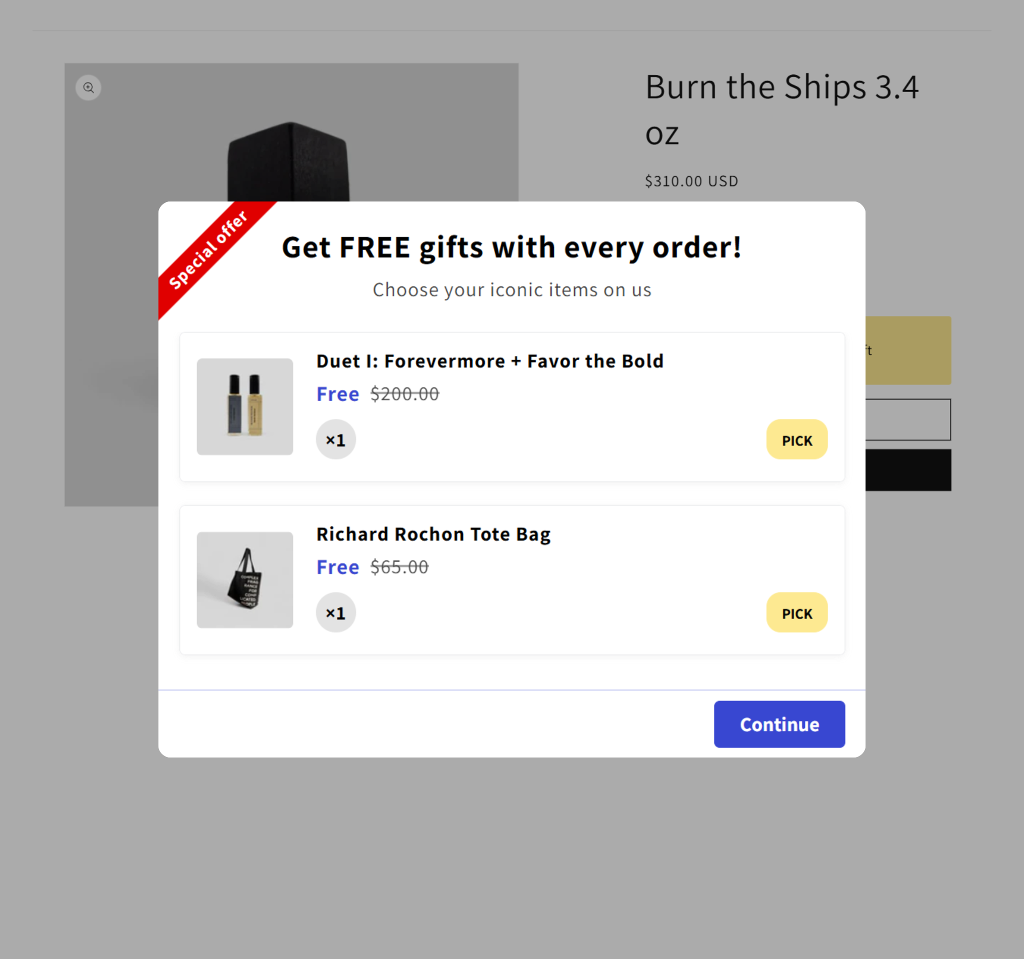 Motivate customers to check out with gift-with-purchase offers. Unlock free gifts, samples, and more as shoppers add items to their cart.