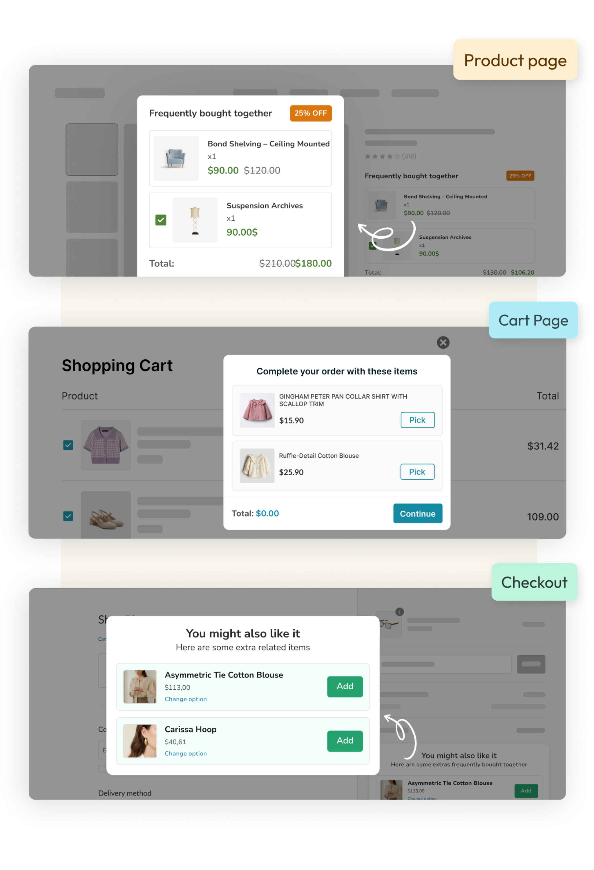 Reach shoppers at the perfect moment with targeted promotions across product pages, carts, and checkout.