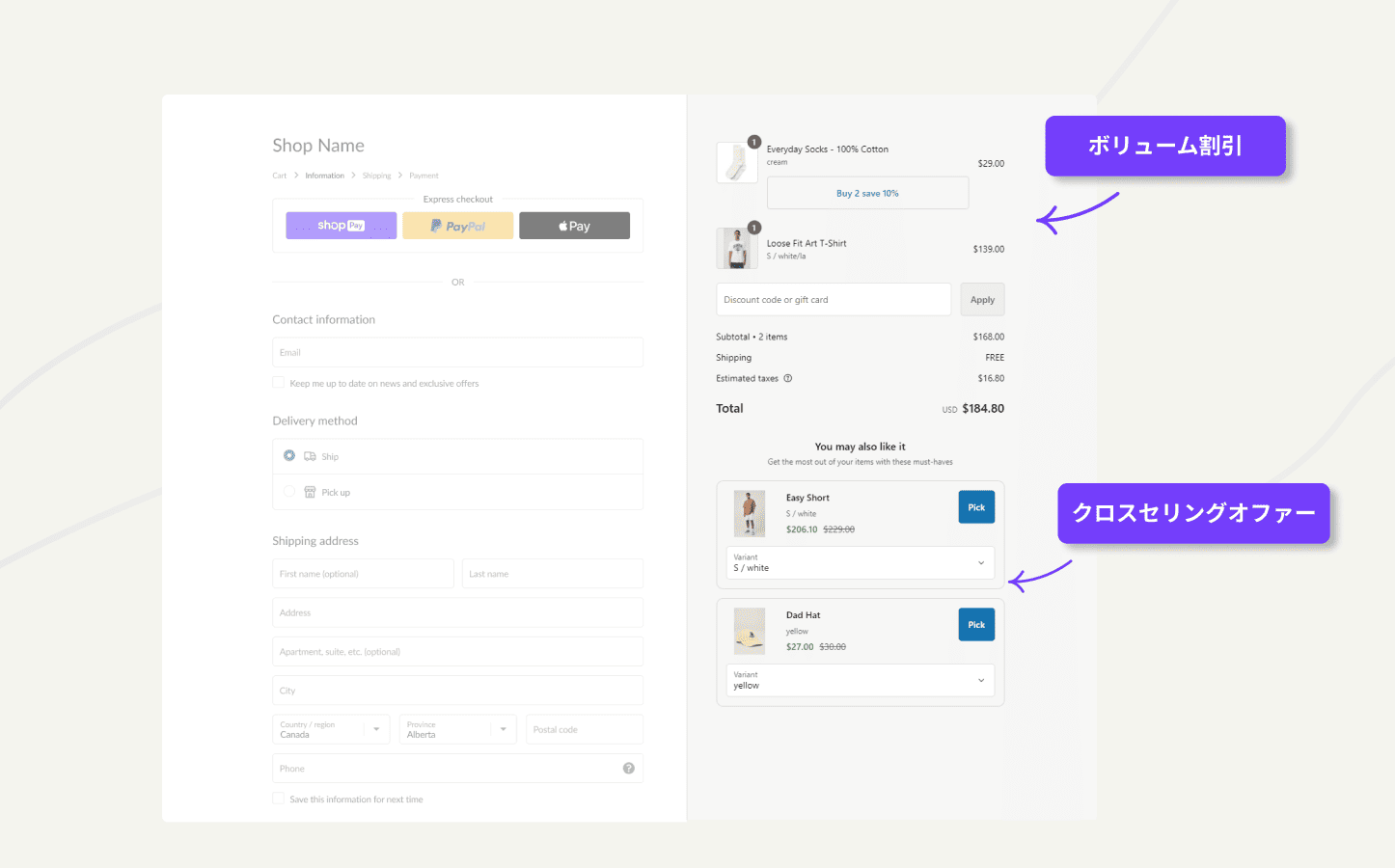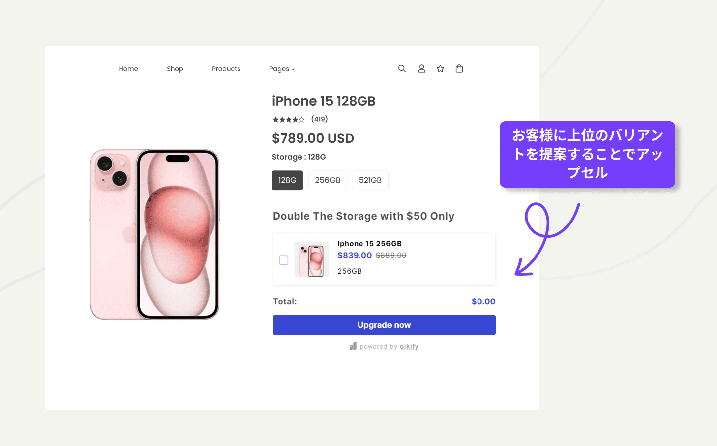 コード不要で簡単に、チェックアウトページにアップセルオファーを統合できます!最適なタイミングで補完商品やアップグレードを提案し、追加の収益を生み出しましょう。